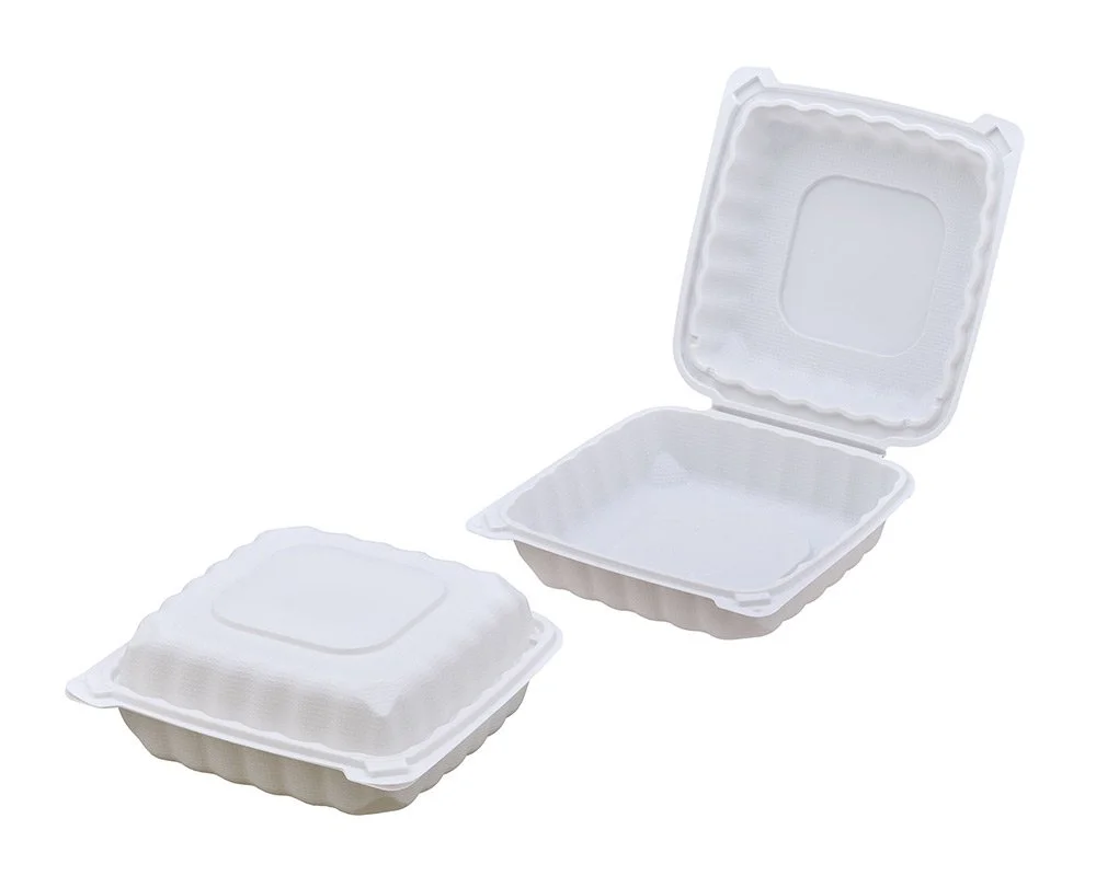A must-have addition to your take-out service, this microwaveable white plastic hinged take-out container. This take-out container is microwave-safe and cut-resistant. It features snap locks for a safe, secure closure and is suitable for both hot and cold applications. It is made from mineral-filled polypropylene that uses 40% less resin than comparable items, making it an eco-friendly option, too! This container offers an effective barrier against moisture and grease and is recyclable at the end of service. For an eco-friendly addition to your take-out service, turn to this take-out container!